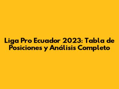 Liga Pro Ecuador 2023: Tabla De Posiciones Y Análisis Completo
