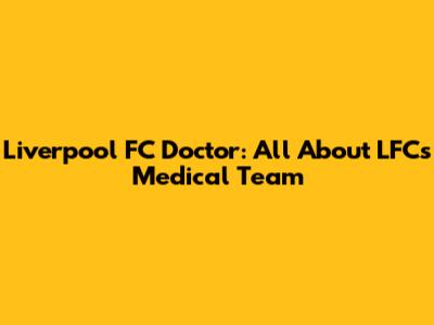 Liverpool FC Doctor: All About LFC's Medical Team