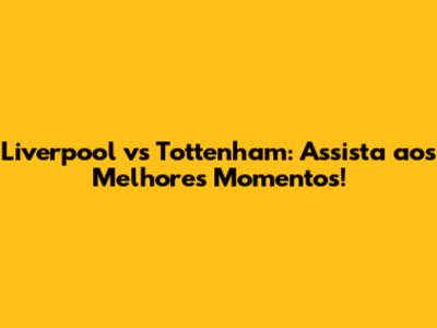 Liverpool Vs Tottenham: Assista Aos Melhores Momentos!