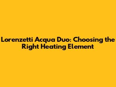 Lorenzetti Acqua Duo: Choosing The Right Heating Element