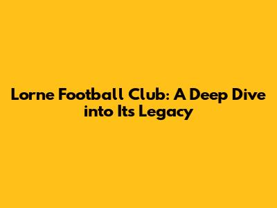 Lorne Football Club: A Deep Dive Into Its Legacy