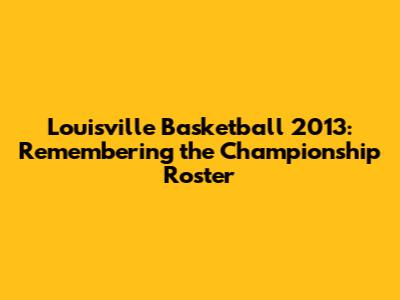 Louisville Basketball 2013: Remembering The Championship Roster