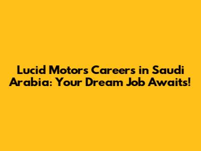 Lucid Motors Careers In Saudi Arabia: Your Dream Job Awaits!