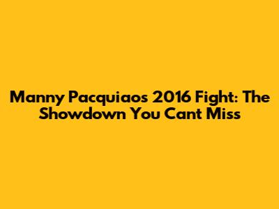 Manny Pacquiao's 2016 Fight: The Showdown You Can't Miss