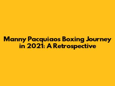 Looking back at Manny Pacquiao's 2021, it is clear that this year was a pivotal one in his career. From the initial anticipation of his return to the ring to the unexpected defeat against Yordenis Ugas, and ultimately, his decision to retire, 2021 encapsulated the highs and lows of a legendary boxing career. Despite the outcome of his final fight, Pacquiao's contributions to the sport remain unparalleled. His journey serves as an inspiration to aspiring athletes and a testament to the power of dedication and hard work. Pacquiao’s final year in boxing was a fitting conclusion to an extraordinary career, leaving a lasting impact on the sport and its fans.