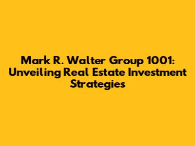 Hey everyone! Let's dive into the world of real estate, specifically focusing on the Mark R. Walter Group 1001 and what makes them a significant player. This isn't just about throwing money into properties; it's about strategic investments, understanding market trends, and making informed decisions. Mark R. Walter Group 1001 has made a name for itself by approaching real estate with a keen eye for opportunity, and a dedication to long-term value creation. But what exactly is Group 1001? How do they operate, and what can we learn from their approach to real estate investment? We're going to break it down, providing insights that you can apply, whether you're a seasoned investor or just starting to dip your toes in the water. We will also explore the strategies, the market, the team, and the future. Get ready to explore the fundamentals and the future of real estate investing. This is the ultimate guide to understanding the Mark R. Walter Group 1001. We will also discuss the importance of market analysis. This will help us to understand what makes them a leading group. Throughout this article, we'll peel back the layers and uncover the key elements that define this real estate powerhouse. So, let’s get started and unravel the complexities of real estate investments, one step at a time! Keep reading to learn more about the team behind the group. This is essential if you want to understand their goals and the direction they are headed in. Understanding the team will help you gain valuable insights into their investment strategy. You will also learn about their mission to create lasting value. Let's delve into the fascinating world of real estate investment.