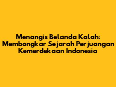 Menangis Belanda Kalah: Sejarah & Perjuangan Kemerdekaan Indonesia