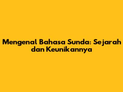 Mengenal Bahasa Sunda: Sejarah dan Keunikannya
