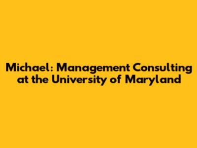 Michael: Management Consulting At The University Of Maryland