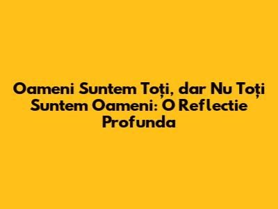 Oameni Suntem Toți, Dar Nu Toți Suntem Oameni: O Reflectie Profunda