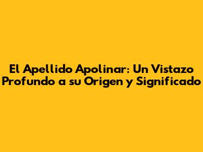 ¡Hola a todos, chicos y chicas! Hoy nos sumergimos en el fascinante mundo de la genealogía para desentrañar el significado del apellido Apolinar. Si llevas este apellido o simplemente te pica la curiosidad, ¡este artículo es para ti! Vamos a explorar de dónde viene, qué nos dice su historia y por qué es tan especial. Prepárense para un viaje en el tiempo porque el apellido Apolinar tiene unas raíces bien profundas y una historia que contar. No es solo un nombre, es un legado. ¿Listos para descubrirlo?