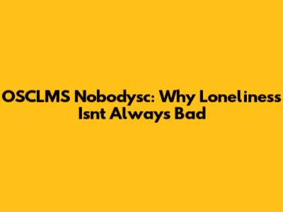 OSCLMS Nobodysc: Why Loneliness Isn't Always Bad