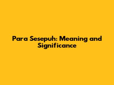 Para Sesepuh: Meaning And Significance