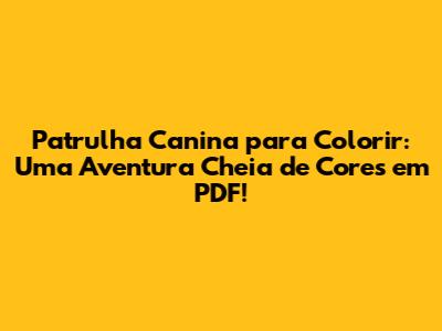 Onde encontrar desenhos da Patrulha Canina para colorir em PDF? A boa notícia é que você está no lugar certo! Preparamos uma seleção incrível de desenhos para você baixar e imprimir. Temos desenhos de todos os personagens da Patrulha Canina: Chase, Marshall, Skye, Rubble, Zuma, Rocky e Everest. E não para por aí! Você também encontrará desenhos com a turma toda em ação, em diversas aventuras e missões. Para facilitar, os desenhos estão em formato PDF, o que significa que você pode baixá-los facilmente, imprimir e começar a colorir. E o melhor de tudo: são gratuitos! Basta escolher seus desenhos favoritos, baixar e imprimir. A partir daí, é só soltar a imaginação e dar vida aos personagens da Patrulha Canina com suas cores preferidas. Não se esqueça de compartilhar suas criações nas redes sociais e marcar a gente! Adoramos ver o resultado da criatividade de vocês. Além dos desenhos dos personagens, também oferecemos desenhos de cenários e veículos da Patrulha Canina, como a Patrulha Canina, o Quartel General e os veículos de cada filhote. Isso permite que as crianças criem suas próprias histórias e aventuras, expandindo ainda mais o universo da Patrulha Canina. Para baixar os desenhos, basta clicar no link de download e salvar o arquivo em seu computador ou dispositivo móvel. Depois, é só imprimir e começar a colorir! Recomendamos usar papel de boa qualidade para que as cores fiquem ainda mais vibrantes e bonitas. Prepare-se para horas de diversão e criatividade com os desenhos da Patrulha Canina em PDF. E não se esqueça de voltar sempre para conferir as novidades e os novos desenhos que adicionamos! A diversão nunca acaba!