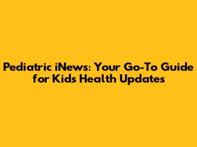 Pediatric INews: Your Go-To Guide For Kids' Health Updates
