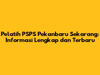Untuk mendapatkan informasi terkini mengenai pelatih PSPS Pekanbaru, ada beberapa cara yang bisa kalian lakukan: