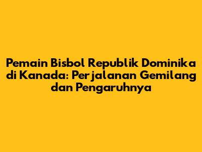 Republik Dominika, sebuah negara yang terletak di jantung Karibia, telah lama dikenal sebagai salah satu lumbung pemain bisbol berbakat di dunia. Pemain-pemain dari negara ini tidak hanya mendominasi liga-liga profesional di seluruh dunia, tetapi juga memberikan kontribusi signifikan bagi perkembangan olahraga ini. Mereka membawa semangat, energi, dan keterampilan yang unik ke dalam permainan, yang membuat mereka sangat dicari oleh tim-tim bisbol di seluruh dunia, termasuk di Kanada. Pemain bisbol Republik Dominika sering kali memiliki kemampuan fisik yang luar biasa, kecepatan, kekuatan, dan ketangkasan yang memukau. Namun, lebih dari itu, mereka juga dikenal karena etos kerja yang keras, dedikasi yang tinggi, dan kecintaan yang mendalam terhadap olahraga yang mereka geluti. Dalam bisbol, mereka tak hanya sekadar atlet, tetapi juga duta bangsa yang membawa nama baik negara mereka di panggung dunia. Mereka sering menjadi inspirasi bagi generasi muda di Republik Dominika, memotivasi mereka untuk mengejar impian mereka dan berusaha mencapai kesuksesan dalam olahraga. Kontribusi mereka tidak hanya terbatas pada lapangan, tetapi juga merambah ke aspek sosial dan ekonomi, memberikan dampak positif bagi komunitas mereka. Banyak pemain bisbol Republik Dominika yang aktif dalam kegiatan amal, membangun sekolah, rumah sakit, dan fasilitas olahraga di negara mereka. Dengan dedikasi mereka yang tak kenal lelah dan semangat juang yang tinggi, mereka telah mengukir sejarah dalam dunia bisbol. Mereka menjadi contoh nyata bagaimana kerja keras, ketekunan, dan cinta terhadap olahraga dapat membawa kesuksesan. Pengaruh mereka sangat terasa di Kanada, tempat mereka tidak hanya menunjukkan kemampuan bermain yang luar biasa, tetapi juga memperkenalkan budaya dan semangat Republik Dominika ke dalam komunitas bisbol Kanada.