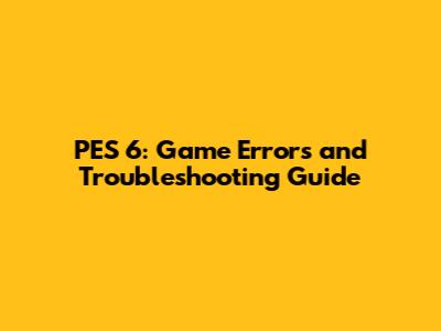 PES 6: Game Errors And Troubleshooting Guide