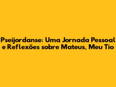 Chegamos ao fim da nossa jornada por Pseijordanse, explorando a vida e o legado de Mateus, meu tio. Espero que essa conversa tenha tocado seus corações e os tenha inspirado a valorizar as pessoas especiais em suas vidas. Que possamos aprender com Mateus a importância do amor, da amizade e da alegria de viver.