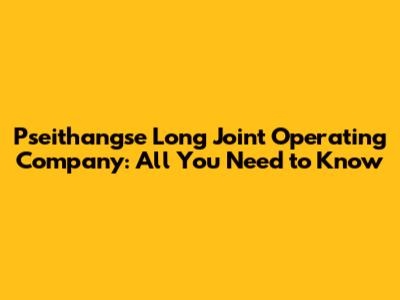Pseithangse Long Joint Operating Company: All You Need To Know