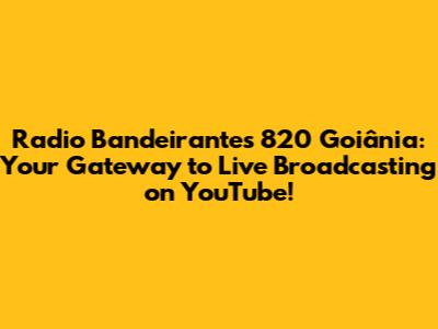 Radio Bandeirantes 820 Goiânia: Listen Live On YouTube!