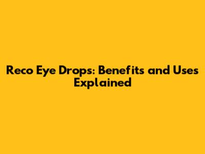 Reco Eye Drops: Benefits And Uses Explained