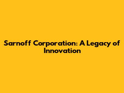 Sarnoff Corporation: A Legacy Of Innovation