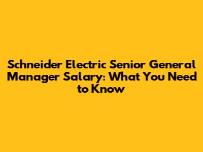 Schneider Electric Senior General Manager Salary: What You Need To Know