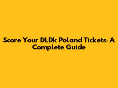 Score Your DLDk Poland Tickets: A Complete Guide
