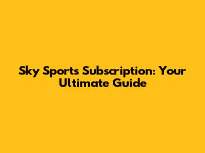 Sky Sports Subscription: Your Ultimate Guide