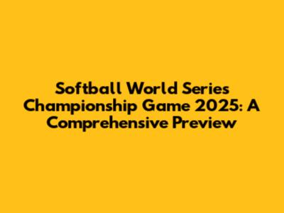 Softball World Series Championship Game 2025: Predictions & Insights