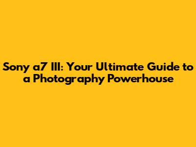 Sony A7 III: Your Ultimate Guide