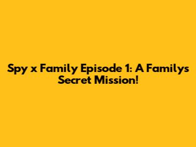Spy X Family Episode 1: A Family's Secret Mission!