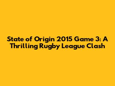 State Of Origin 2015 Game 3: A Thrilling Rugby League Clash