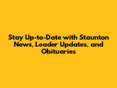 Hey guys! Are you looking to stay informed about everything happening in Staunton? Whether it's local news, leadership updates, or remembering loved ones through obituaries, you've come to the right place. Let's dive into how you can keep your finger on the pulse of Staunton.