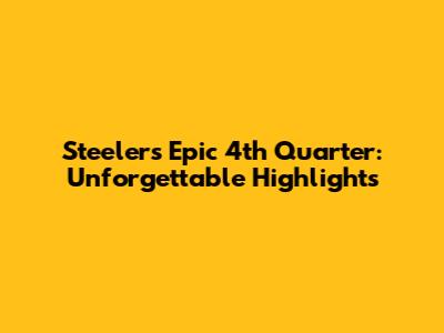 Steelers' Epic 4th Quarter: Unforgettable Highlights