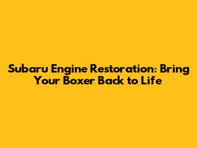 Subaru Engine Restoration: Bring Your Boxer Back To Life