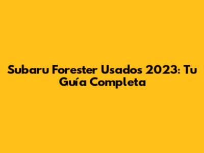Subaru Forester Usados 2023: Tu Guía Completa