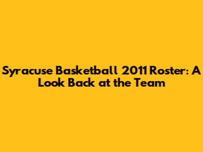 Syracuse Basketball 2011 Roster: A Look Back At The Team