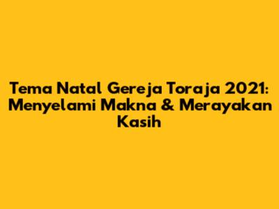 Guys, Natal adalah waktu yang paling dinanti-nantikan oleh umat Kristiani di seluruh dunia, termasuk di Gereja Toraja. Setiap tahun, Gereja Toraja menetapkan tema Natal yang berbeda-beda, memberikan fokus khusus pada pesan-pesan penting dalam perayaan kelahiran Yesus Kristus. Tahun 2021 tidak terkecuali, dengan tema yang sarat makna dan ajakan untuk merenungkan kembali esensi Natal. Artikel ini akan membahas secara mendalam tema Natal Gereja Toraja 2021, menggali makna yang terkandung di dalamnya, serta bagaimana tema tersebut diwujudkan dalam perayaan Natal.