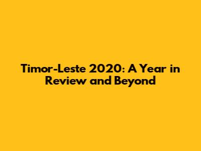 Timor-Leste 2020: A Year In Review And Beyond