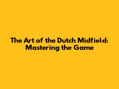 The Art of the Dutch Midfield: Mastering the Game