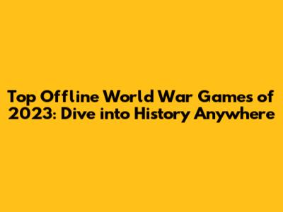 Top Offline World War Games Of 2023