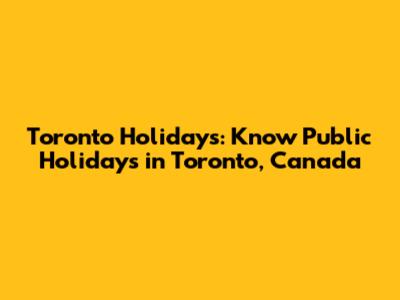 Toronto Holidays: Know Public Holidays In Toronto, Canada