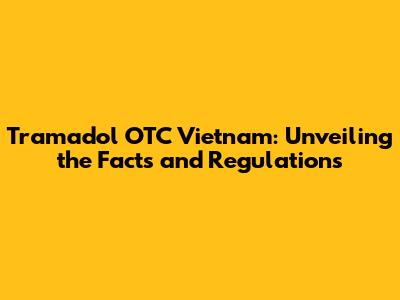 Tramadol OTC Vietnam: What You Need To Know