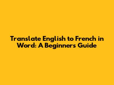 Translate English To French In Word: A Beginner's Guide
