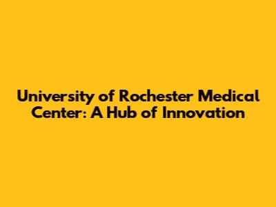 University Of Rochester Medical Center: A Hub Of Innovation