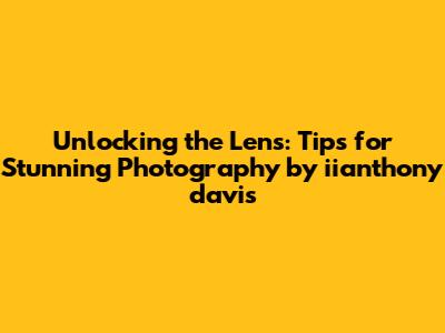 Unlocking The Lens: Tips For Stunning Photography By Iianthony Davis