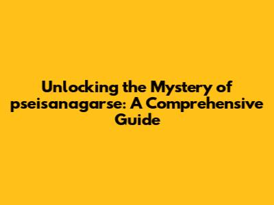 Unlocking The Mystery Of Pseisanagarse: A Comprehensive Guide