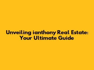 Unveiling Ianthony Real Estate: Your Ultimate Guide